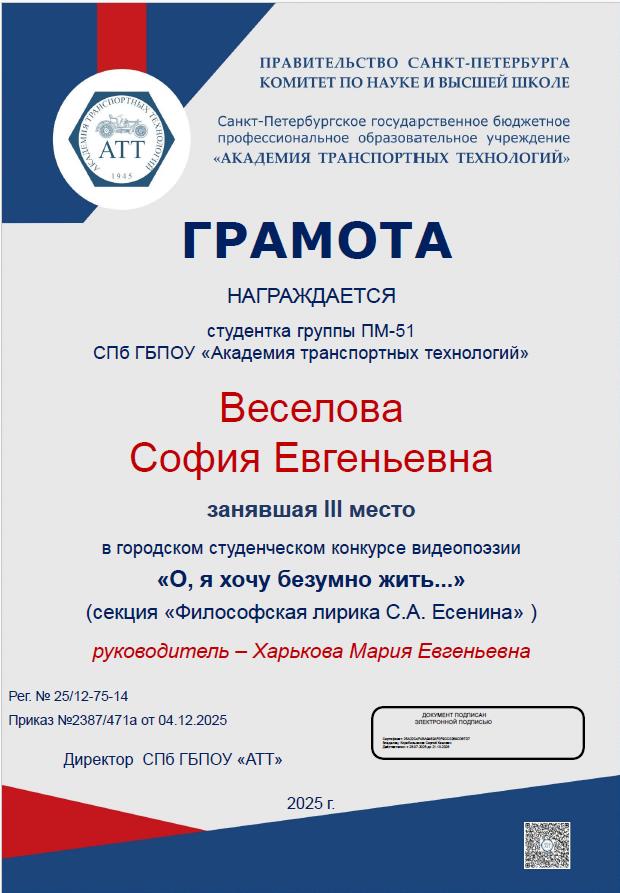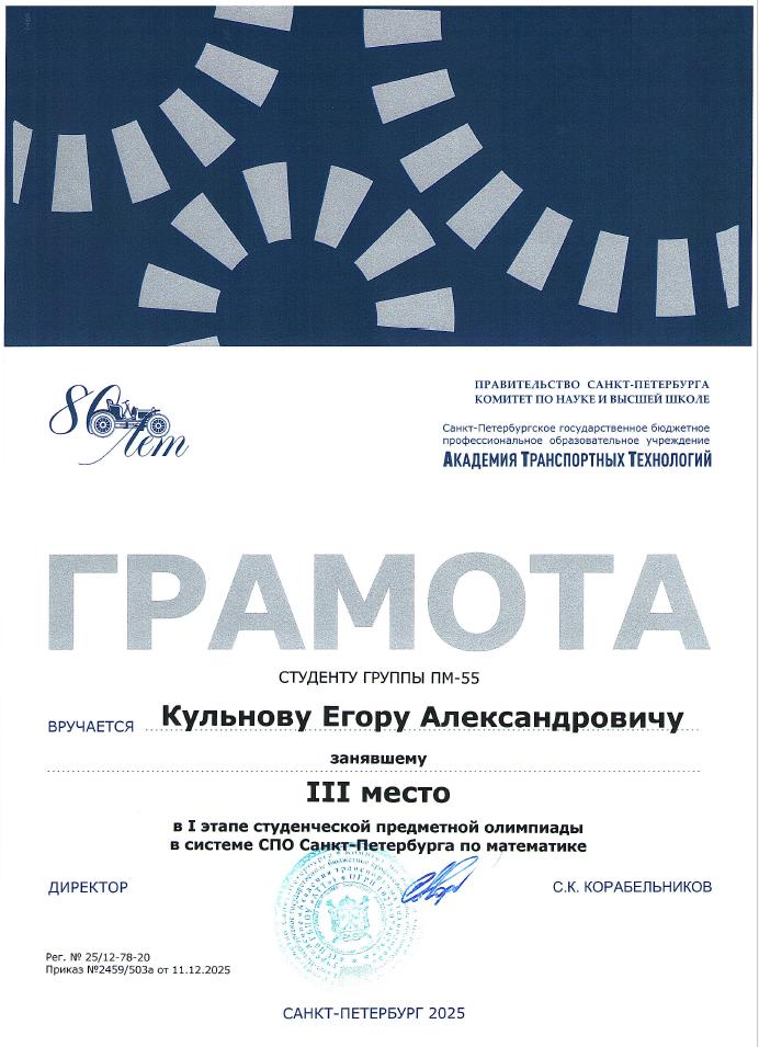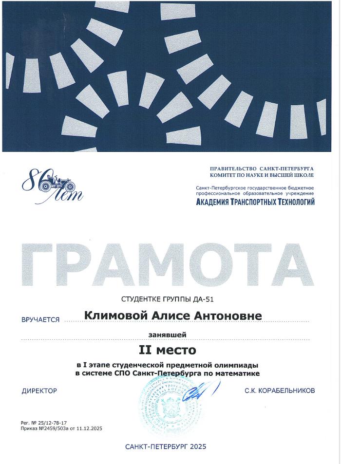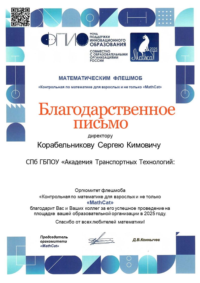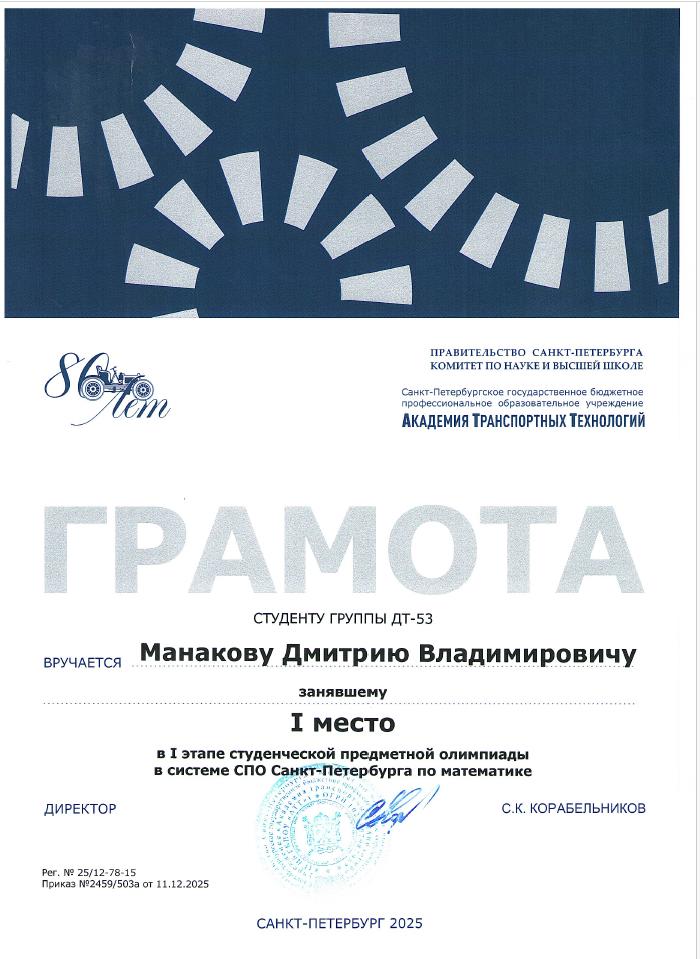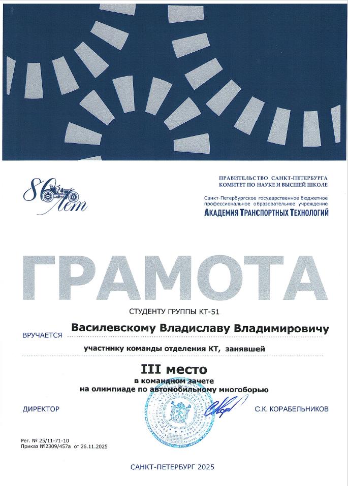 Благодарственное письмо за высокий профессионализм вклад в подготовку призера Чемпионата Профессионалы  Историко-патриотический конкурс Межрегиональной конференции Сенявинские чтения  Литературно-вокальный конкурс 900 дней  Литературно-вокальный конкурс 900 дней Академия транспортных технологий Профессионалы  Академия транспортных технологий Профессионалы  Городской конкурс Вызовы цифровой трансформации Всероссийский конкурс Большая перемена  Всероссийский конкурс Большая перемена  Щербаковская олимпиада профессионального мастерства Щербаковская олимпиада профессионального мастерства Щербаковская олимпиада профессионального мастерства  Олимпиада по химии   Олимпиада по математике   Олимпиада по математике   Олимпиада по математике  Конкурс рисунков и плакатов Математика в моей профессии  Олимпиада по математике  Физика сквозь призму современного автомобиля   Физика сквозь призму современного автомобиля   Физика сквозь призму современного автомобиля   Физика сквозь призму современного автомобиля   Физика сквозь призму современного автомобиля   Физика сквозь призму современного автомобиля   Олимпиада по физике   Олимпиада по физике  Олимпиада по физике Декада ЦК №1  Городской студенческий Городской студенческий конкурс видеопоэзии Городской студенческий конкурс видеопоэзии  Академия транспортных технологий Городской студенческий конкурс видеопоэзии  Городской студенческий конкурс видеопоэзии  Академия транспортных технологий Городской студенческий конкурс видеопоэзии  Городской студенческий конкурс видеопоэзии  Академия транспортных технологий Городской студенческий конкурс видеопоэзии  Городской студенческий конкурс видеопоэзии  О конкурсе Благодарственное письмо MatCat  Диплом координатора площадки MatCat  Диплом координатора площадки MatCat Новость Благодарность эксперту демонстрационного экзамена  Благодарность Академия транспортных технологий Конкурс профессионального мастерства Путь к комфорту   Конкурс профессионального мастерства Путь к комфортуКонкурс профессионального мастерства Путь к комфорту  Конкурс профессионального мастерства Путь к комфорту Конкурс профессионального мастерства Путь к комфорту Конкурс профессионального мастерства Путь к комфортуКонкурс профессионального мастерства Путь к комфортуНовостьБережливое будущее  Бережливое будущее Новость Всероссийский конкурс Безопасная дорога – детямНовость Диплом Молодёжный фестиваль Студенческий марафон Академия транспортных технологий