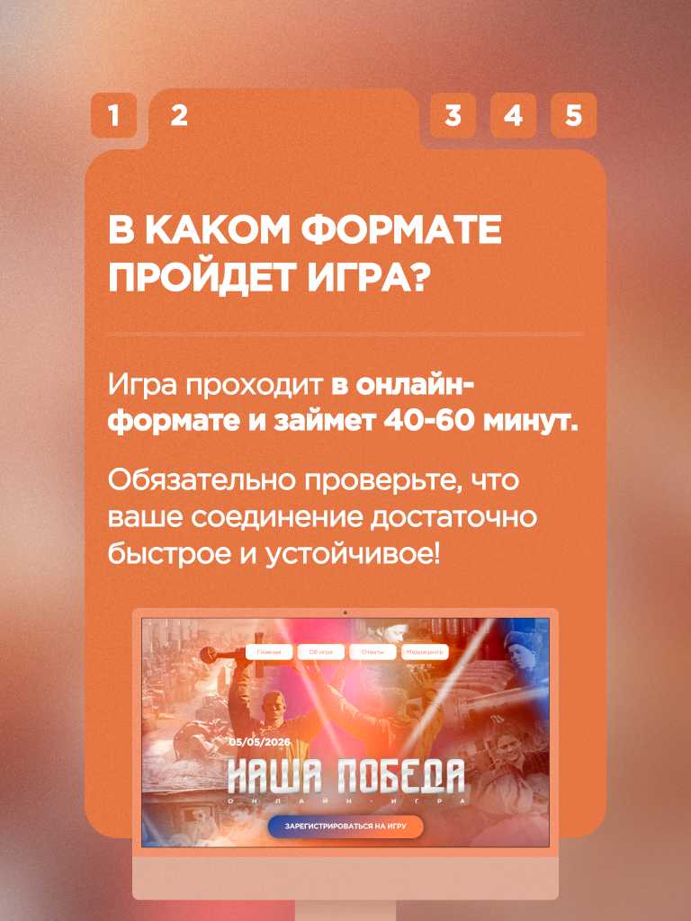 Сохраняем память и расширяем знания о событиях Великой Отечественной войны на онлайн-игре "Наша Победа"!Уже 5 мая ты узнаешь больше о жизни в тылу, ключевых сражениях и военных операциях, датах, изменивших ход войны, именах Героев и полководцев. Участвуй индивидуально, получай сертификат участника и шанс выиграть ценные призы за правильные ответы. Регистрация открыта до 4 мая: https://vk.cc/cWa3GA