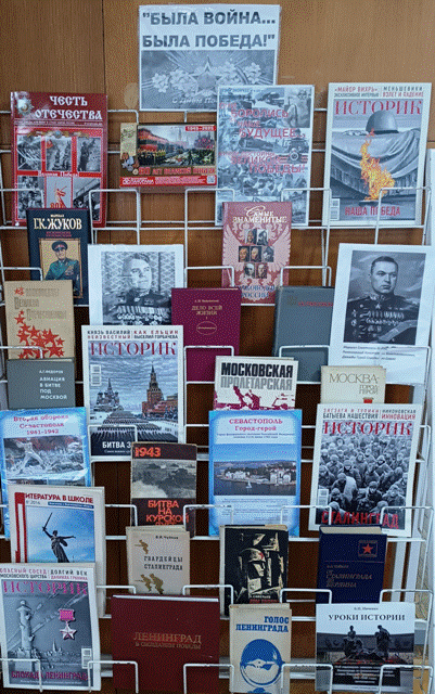 В библиотеке Академии к 80 –летию Великой Победы оформлены стенд «Салют, Победа!» и книжно-иллюстративная выставка литературы «Была война… Была Победа!»Подвиг - это когда в великом бескорыстном порыве души человек отдает себя людям, во имя людей жертвует всем, даже собственной жизнью. Бывает подвиг одного человека, двух, трех, сотен, тысяч, а бывает ПОДВИГ НАРОДА, когда народ поднимается на защиту Отечества, его чести, достоинства и свободы. И нужно было быть очень сильным народом, иметь стальной характер, обладать великой нравственной силой, чтобы противостоять врагу, побороть его несметные силы. На защиту Родины встали все. Уходили на фронт эшелоны, создавались партизанские отряды, вставали на трудовую вахту женщины и дети. Они сражались в партизанских отрядах, работали на военных заводах, собирали тёплые вещи для фронтовиков, выступали с концертами перед ранеными в госпиталях. Все дальше в прошлое уходят годы страшной войны. Но подвиг людей, вставших на защиту Отечества, будет вечно жить в памяти российского народа. В библиотеке Академии к 80 –летию Великой Победы оформлены стенд «Салют, Победа!» и книжно-иллюстративная выставка литературы «Была война… Была Победа!»