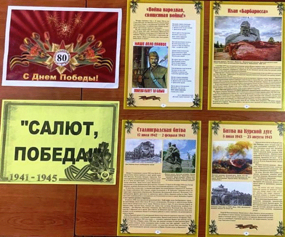 К 80-летию Великой ПобедыЕсть события, даты, имена людей, которые вошли в истории города, края, страны и даже в историю всей Земли. О них пишут книги, слагают легенды, сочиняют стихи, музыку. Главное – о них помнят. Одним из таких событий стала Великая Отечественная война нашего народа против фашистской Германии. И эта память передаётся из поколения в поколение и не даёт померкнуть далёким дням и событиям. В музее «Боевой Славы» библиотеки академии совместно с преподавателями по информационным технологиям Гордеевой Е.А. и Кононовой М.В. проходил квиз по истории событий Великой Отечественной войны среди студентов первого и второго курса. Результатом мероприятия были разработаны и оформлены открытки и буклеты, изготовленных на компьютерах студентами, посвящённых 80-летию Великой Победы. В настоящее время выставку лучших работ можно увидеть на втором этаже первого корпуса.