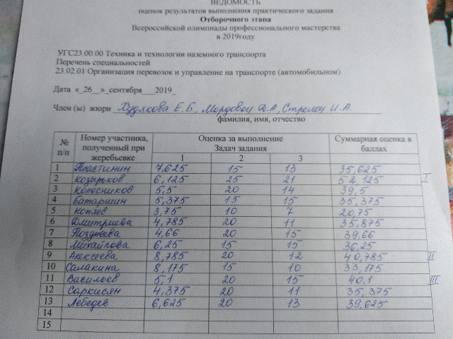 26 сентября 2019 преподавателями ЦК № 11 «Организация перевозок и безопасность движения» проведен отборочный этап Всероссийской олимпиады профессионального мастерства по укрупненной группе специальности УГС 23.00.00 Техника и технологии наземного транспорта.