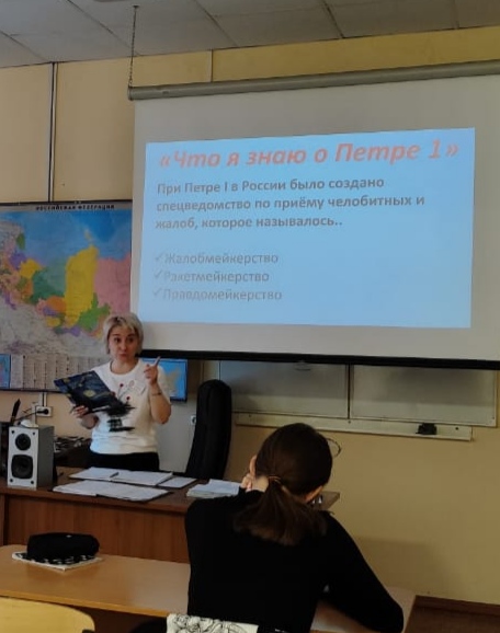 В группе ДЭ-32 прошла познавательная викторина «Что я знаю о Петре l ». Ребята очень бойко отвечали на поставленные вопросы, что говорит о хорошей подготовке наших студентов.