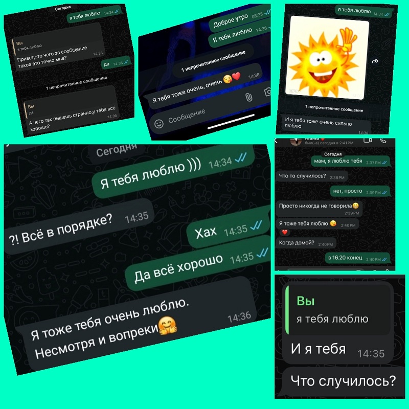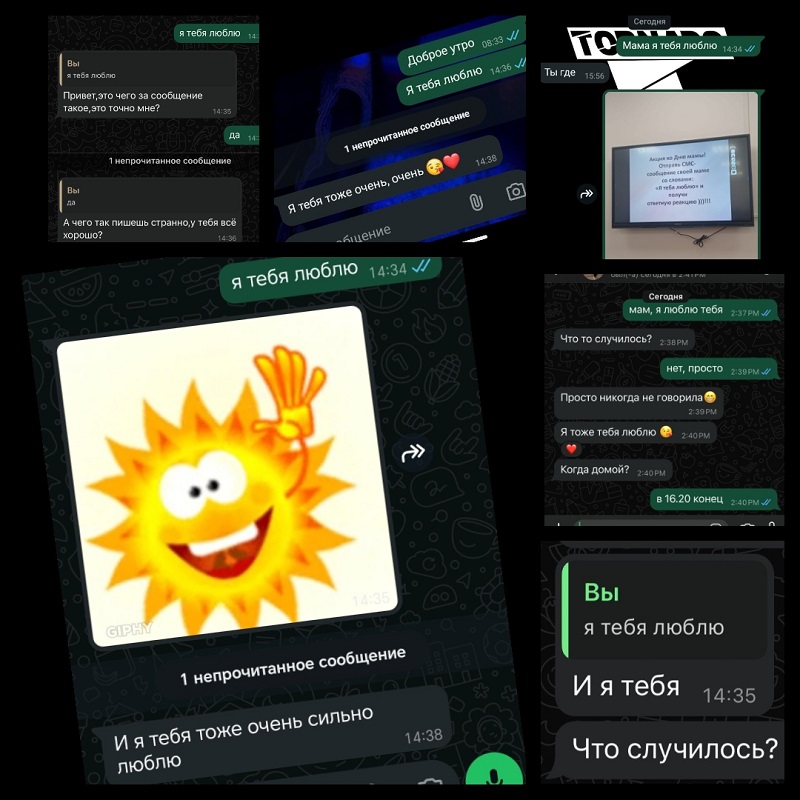В завершении беседы ребята приняли участие в акции СМС-сообщение маме «Я тебя люблю». И получили ответную реакцию от мам. Из фото и скринов смс от мам был оформлен коллаж и отправлен в чат родителям.