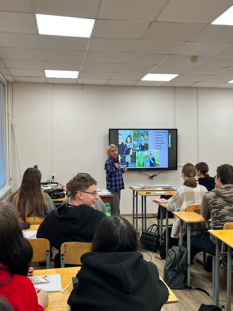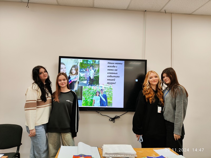 27 ноября в группе ДЭ-42 проводилась тематическая беседа в очень теплой душевной атмосфере. Студенты заранее предоставили фото своих мам для презентации. Поведали интересные и забавные истории, которые происходили у них с мамами. Всем желающим удалось выразить самые главные слова о самом родном человеке в их жизни. Это слова любви, добра, заботы и бесконечного счастья, что у них есть мама!