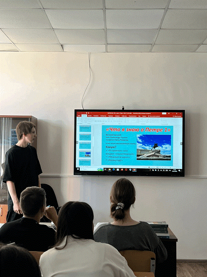 19 мая 2025 года в группе ДЭ-42 прошла познавательная викторина «Что я знаю о Петре I». Студенты с большим интересом окунулись в атмосферу исторических событий времен Петра Великого, проявили внимательность и с удовольствием отвечали на вопросы викторины.