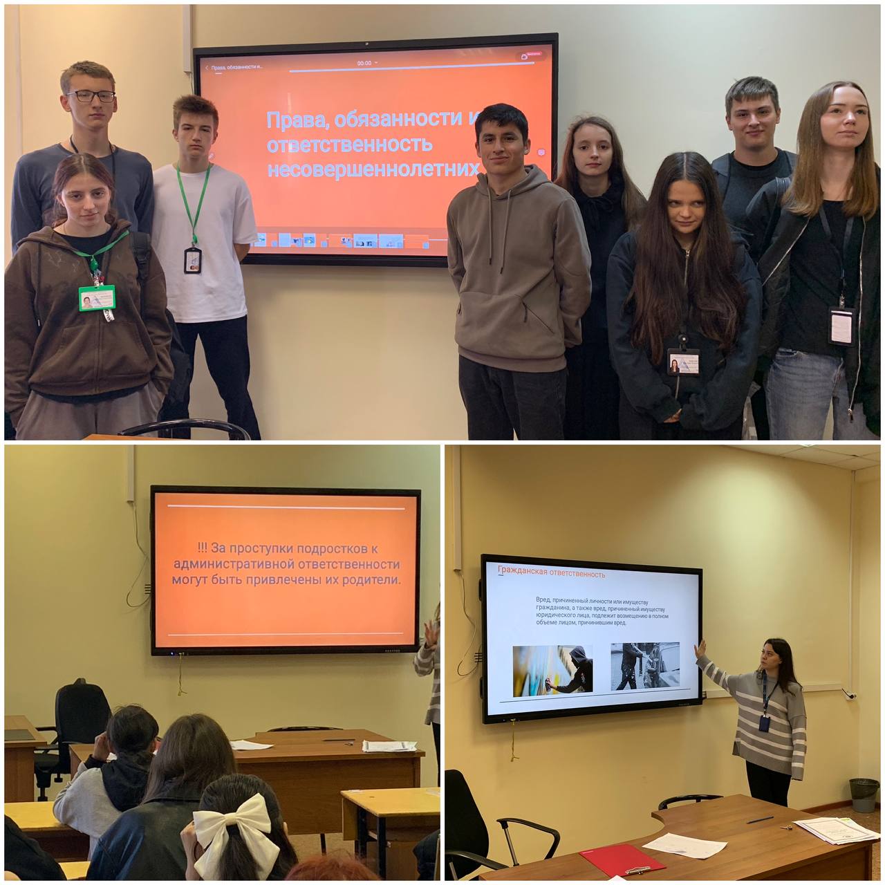 В ходе беседы были подробно разобраны основные гражданские, семейные, имущественные и социальные права, круг обязанностей перед учебным заведением, родителями и обществом, а также виды ответственности – административная и уголовная.