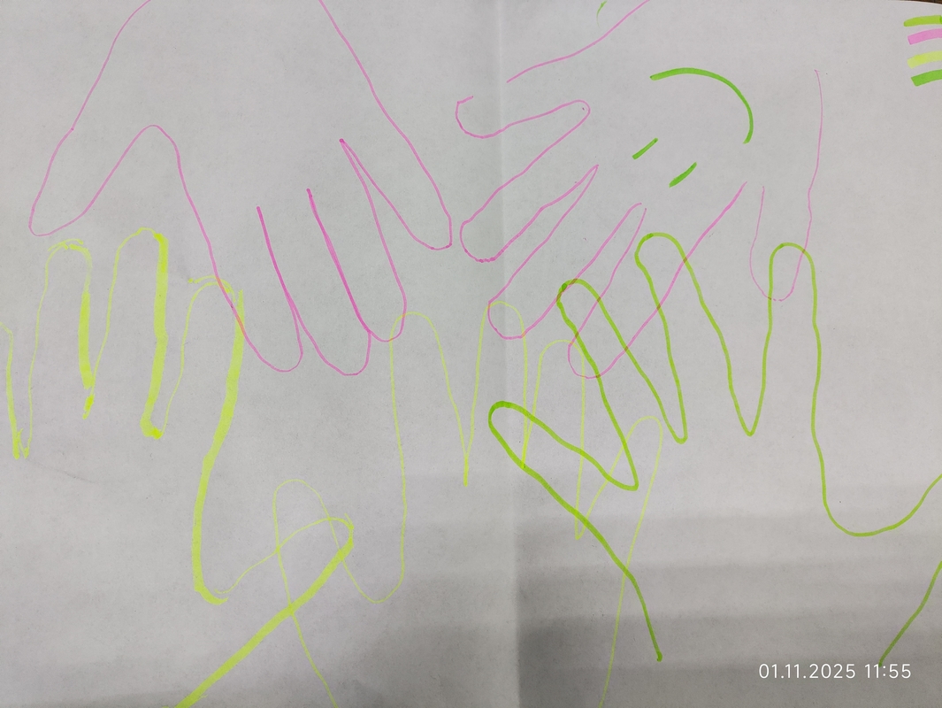 В знак дружбы и согласия ребята нанесли свои ладони на плакате и заручились, что в их группе будет царить понимание и взаимоуважение.