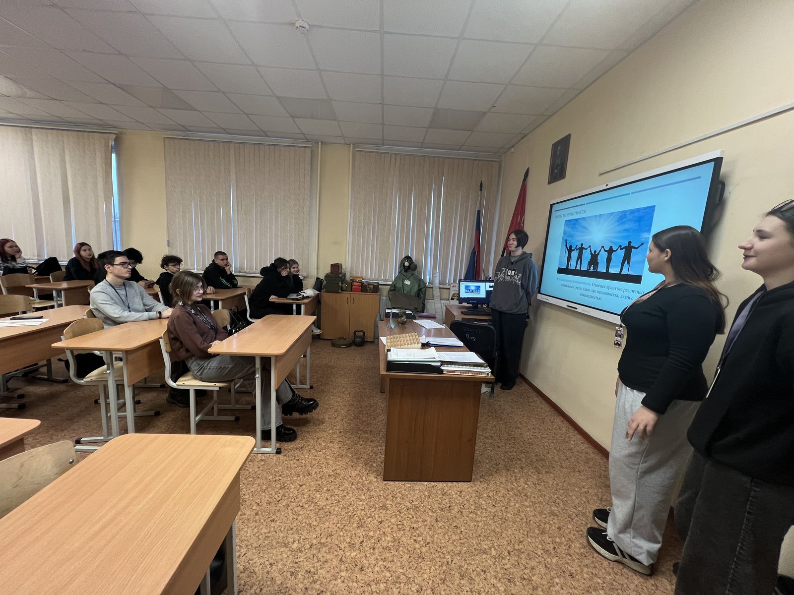 Мир, который мы создаемВ группе ДЭ-43 прошел тематический час на тему: "Мир, который мы создаем", посвященный Международному дню толерантности. Мы собрались, чтобы поговорить на важную и актуальную тему: как наши ежедневные слова, поступки и отношение друг к другу формируют ту реальность, в которой мы живем. Разговор получился живым и практичным - мы обсуждали, что такое настоящее уважение и принятие, почему так легко обидеть человека неосторожным словом, и как простые шаги вроде умения слушать и пытаться понять другого могут кардинально изменить атмосферу в нашем коллективе. Мероприятие не просто дало пищу для размышлений, но и зарядило желанием действовать - строить более доброжелательный, открытый и комфортный мир прямо здесь, в нашей группе, начиная с себя. Большое спасибо всем, кто принял активное участие и поделился своим мнением.
