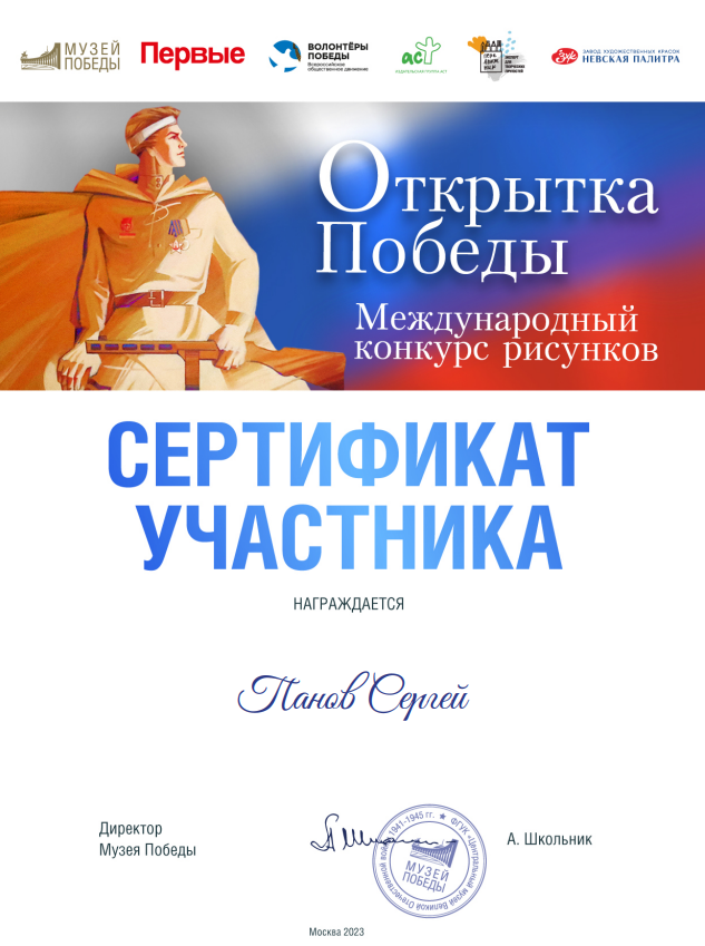 Творческие работы ребят были опубликованы на сайте Музея Победы и получили большое количество голосов поддержки. После подведения итогов Папкин Иван и Панов Сергей получили сертификаты участников международного конкурса.