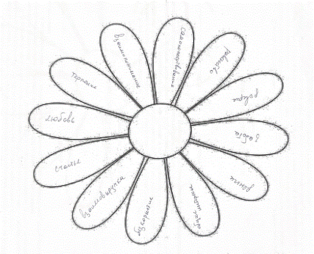 В ходе беседы, в игровой форме, ребята назвали качества счастливой семьи для каждого из них, отмечая эти качества на лепестках ромашки - символе семьи, любви и верности.