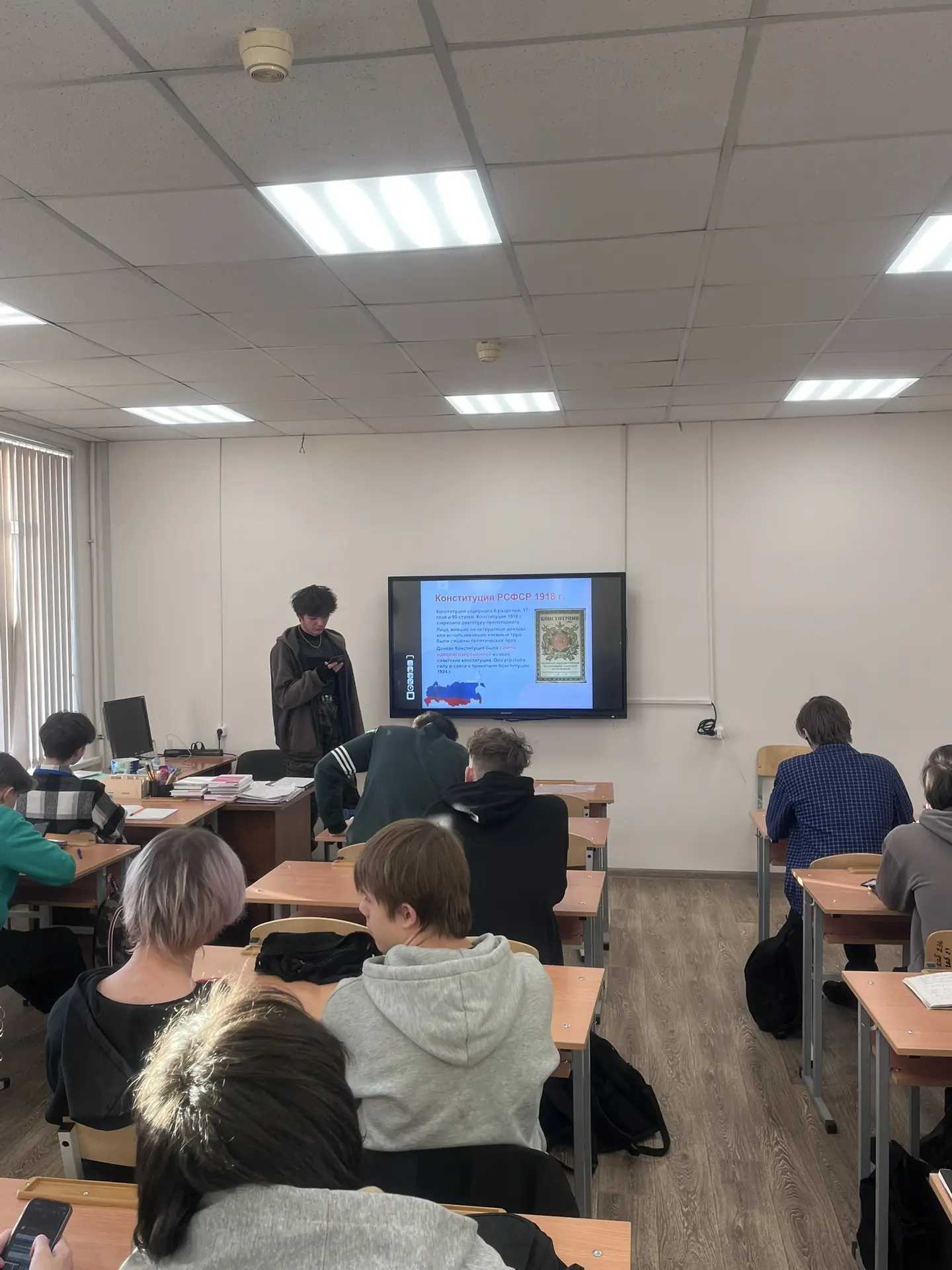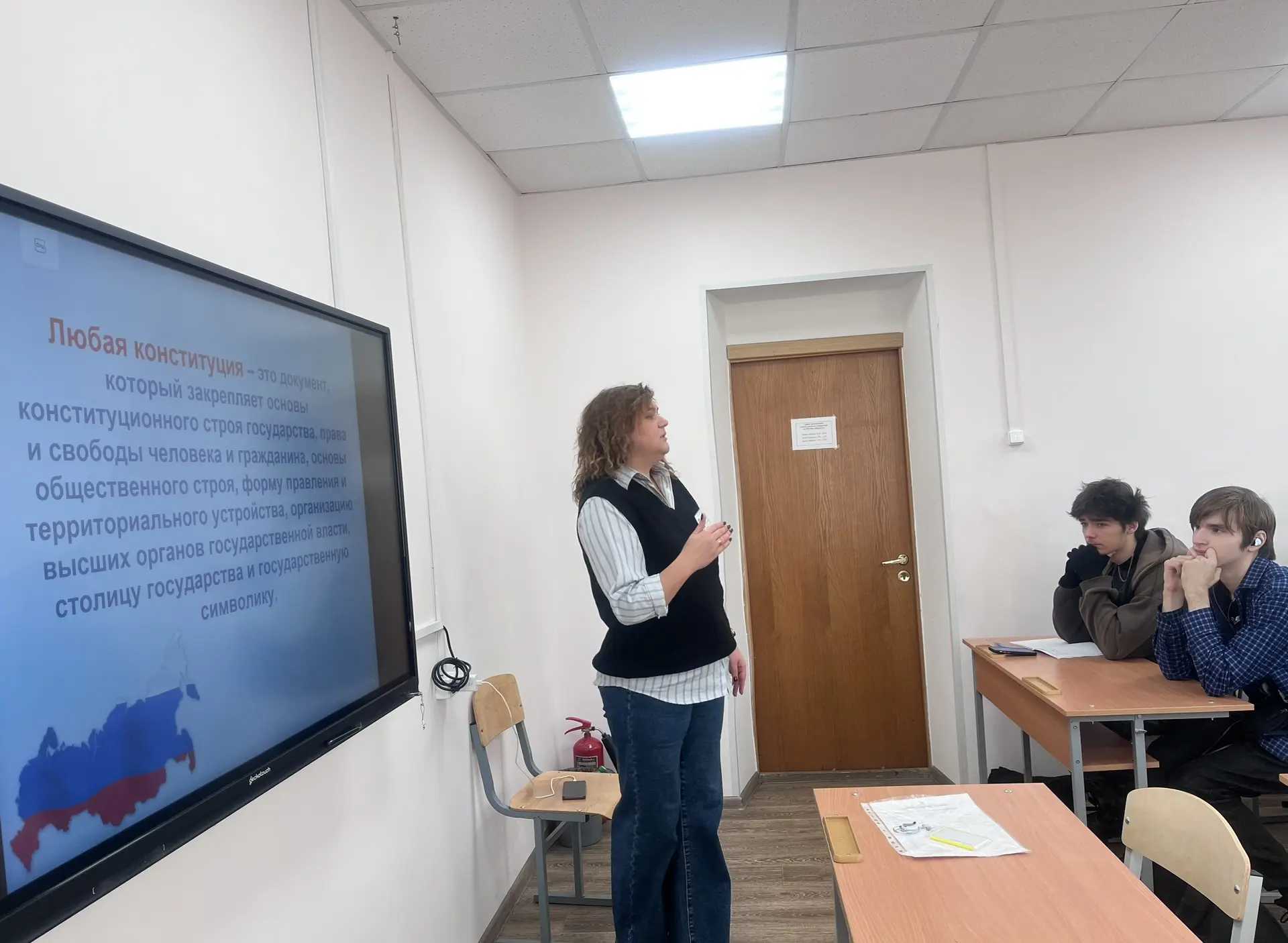 День Конституции Российской Федерации в группе ДВ-41Сегодня, когда вся страна празднует День Конституции Российской Федерации, в группе ДВ-41 состоялось важное просветительское мероприятие — круглый стол "Что значит Конституция для каждого из нас". Мероприятие посвящено повышению уровня правовой грамотности среди студенческой молодежи, формированию уважительного отношения к основным положениям Конституции Российской Федерации и популяризации основ конституционного строя нашей страны. Студент группы Михаил Прусаков рассказал историю принятия Конституции РФ и основные этапы её развития, а также основные права и свободы гражданина РФ. Участие в классном часе формата круглого стола позволит студентам лучше осознать значимость Конституции РФ, сформировать понимание роли закона в обществе, повысить уровень гражданской ответственности и правовой культуры.