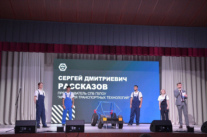 Преподаватель Сергей Дмитриевич Рассказов представлял Академию транспортных технологий в номинации «Педагог-новатор». В своем выступлении он креативно отразил модель взаимодействия со студентами, представив её как схему автомобиля багги: «Пришедшие после школы первокурсники — это рама, каркас, который мы, преподаватели, должны наполнить метапредметными и профессиональными знаниями и умениями, используя проектные методы, личностные ориентиры и дуальное обучение», - сказал со сцены преподаватель. «И от того, насколько качественно мы сумеем вложить эти знания в умы ребят, настолько профессиональными и высококлассными специалистами они станут в будущем».
