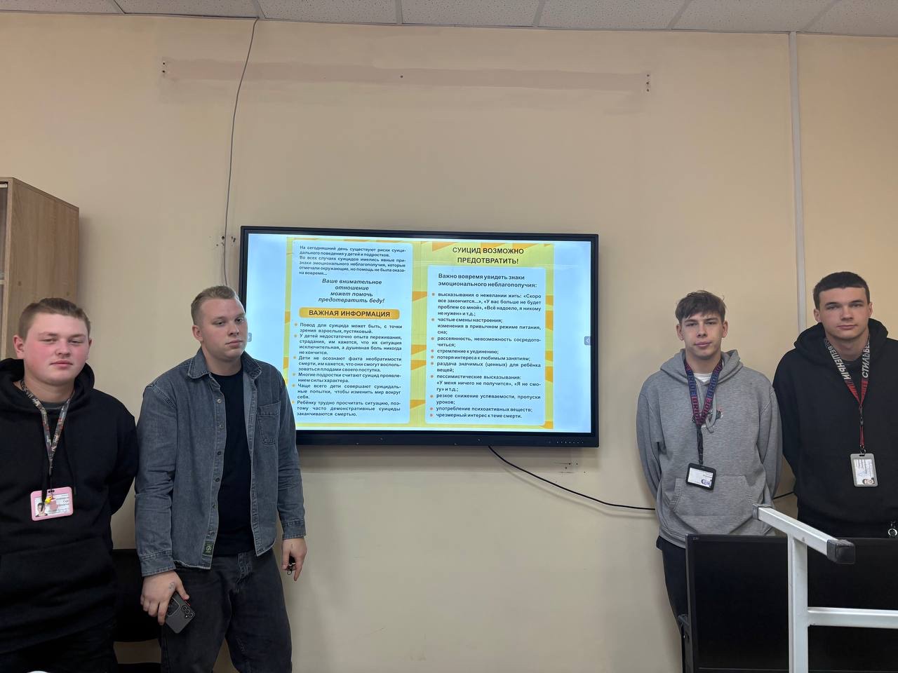 Также особое внимание уделялось обсуждению темы профилактики суицидального поведения. Педагоги-организаторы подчеркнули важность своевременного обращения за помощью и поддержки близких в трудные моменты жизни.