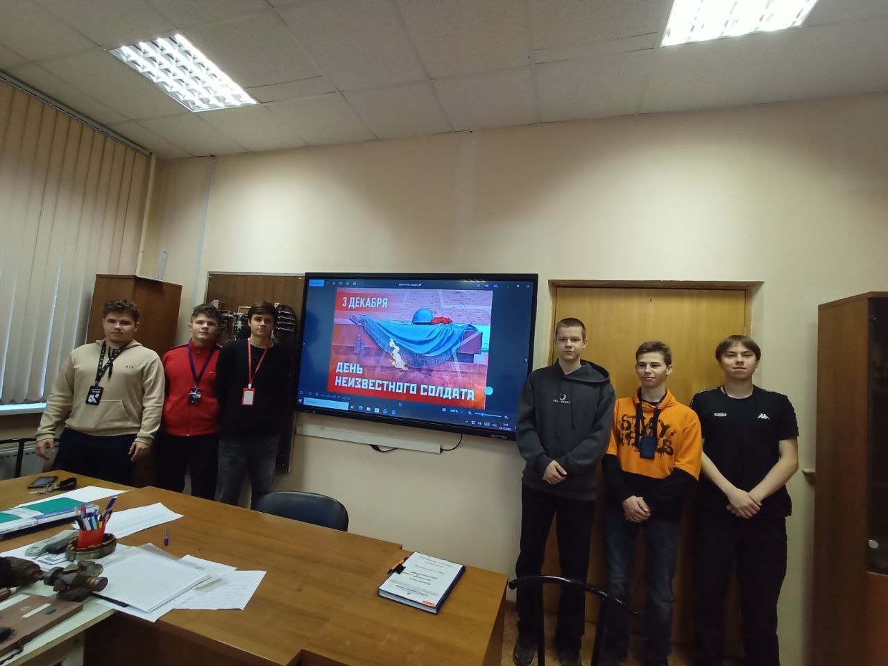 Информационный час на тему: "Вечная слава неизвестному солдату"3 декабря в группе ДТ-51 состоялся информационный час на тему: "Вечная слава неизвестному солдату". В ходе мероприятия мы постарались усилить чувства гордости и уважения к героическому прошлому нашей Родины. Информационный час прошёл в форме живого общения, сопровождающегося мультимедийной презентацией, рассказывающей историю появления памятника "Памятник неизвестному солдату" и отражающей значение памяти о погибших защитниках отечества. Особое внимание уделялось значимости сохранения исторической памяти поколений, сохранению наследия предков, выраженного в мемориалах и памятниках неизвестным героям войны. По итогам проведенного мероприятия участники отметили важность сохранения исторической памяти и благодарности своим предкам, защищавшим нашу страну в годы Великой Отечественной войны.