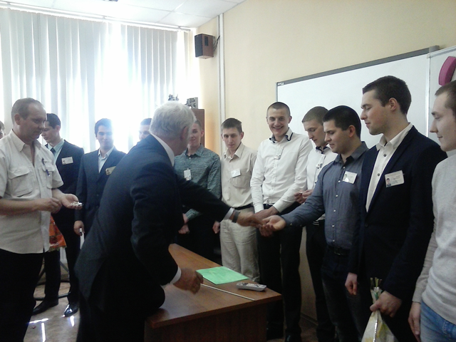 Председатель ГЭК, руководитель представительства АСМАП по Санкт-Петербургу, Дацюк Александр Макарович поздравил выпускников и вручил им памятные значки.
