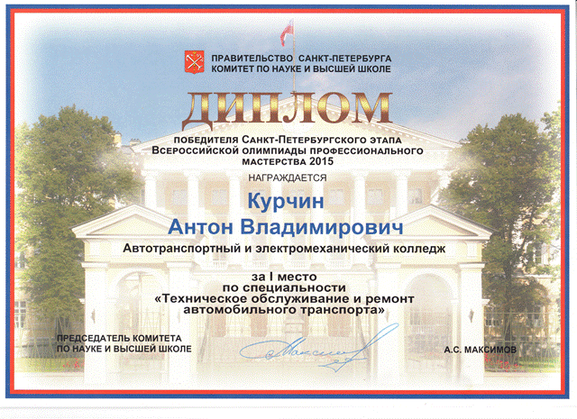 Поздравляем студентов нашего отделения Курчина Антона (гр.ДТ-51) за I место и Михеева Дмитрия (гр.ДТ-36) за II место в Санкт-Петербургском этапе Всероссийской олимпиады профессионального мастерства 2015.