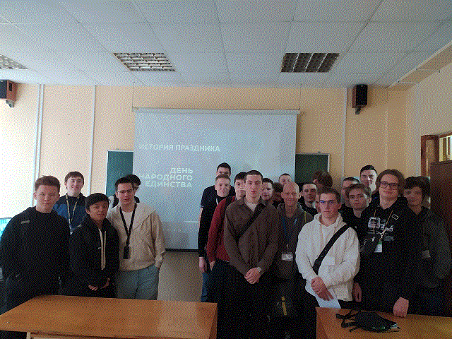 История праздника. День народного единства05.11.2024 г. в группе КР-41 состоялась беседа «История праздника. День народного единства». Единство народов во все времена было и остаётся главной национальной идеей России, залогом её достойного будущего. Студенты познакомились с историей возникновения праздника, вспомнили написанное в учебниках о том, как Кузьма Минин и Дмитрий Пожарский собрали ополчение, прогнали польских интервентов из Москвы и положили конец Смутному времени в России. |