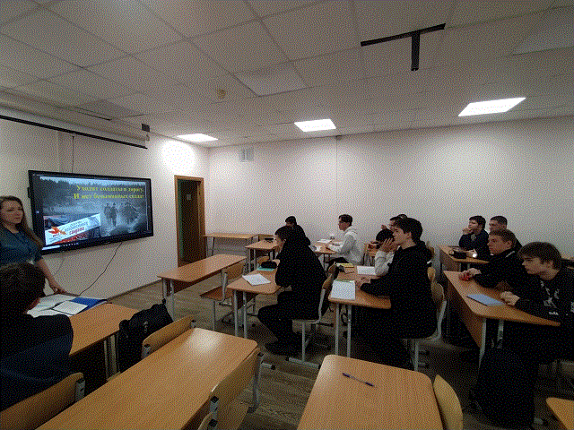 Уходят солдаты в дорогу. И нет безымянных солдат03.12.2024 г. в группе КР-41 прошел патриотический час «Уходят солдаты в дорогу. И нет безымянных солдат», посвящённый Дню Неизвестного Солдата. Впервые День Неизвестного Солдата в нашей стране отметили в 2014 году. Студенты узнали о значении этого дня, об истории памятника, вспомнили о подвигах тех, кто отдал жизнь, но остался безымянным. Обсудили, почему необходимо и важно сохранять память о героях. |