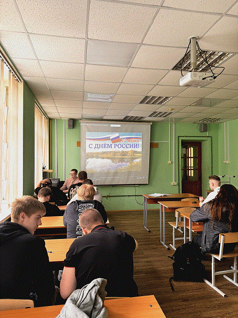 Для студентов отделения КТ прошли мероприятия, посвящённые Дню России: 09.06.2025 г. патриотический час «Россия - ты моя на веки!» для групп КР-35, КИ-21 и 11.06.2025 г. исторический экскурс «Прекрасна ты моя Россия» в группе КР-21.