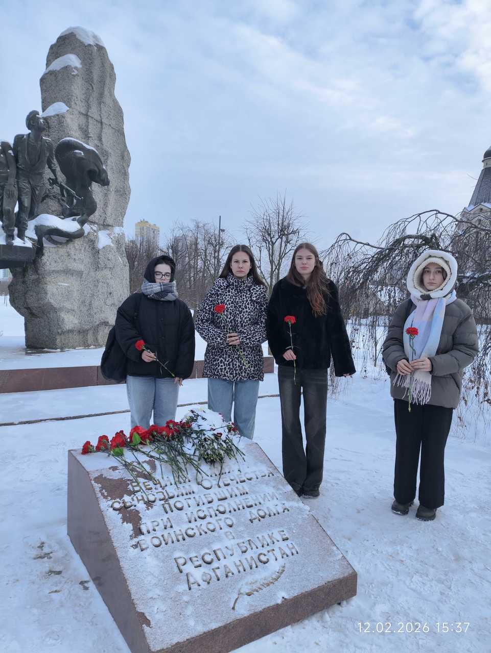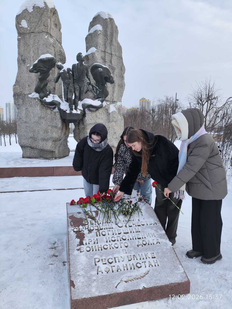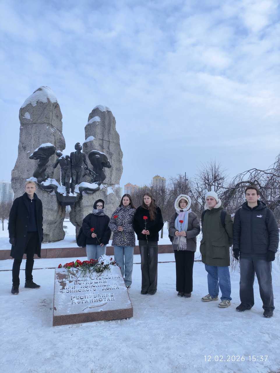 Акция "Гвоздика памяти" "Афганистан болит в душе"Возложение цветов студентами отделения ДЭ к мемориалу в парке воинов-интернационалистов 12 февраля Каждый год 15 февраля в России вспоминают знаковую дату - День вывода советских войск из Афганистана. В этот день в 1989 году последняя колонна пересекла мост Дружбы через Амударью, поставив точку в почти десятилетнем военном конфликте. В честь этой даты по всей стране проходит патриотическая акция "Гвоздика памяти". Это не просто торжественное мероприятие, а день тихой скорби и благодарности, объединяющий ветеранов, родственников погибших и молодое поколение. Студенты отделения ДЭ стали ярким примером истинной преемственности поколений. 12 февраля они посетили мемориал в парке воинов-интернационалистов, чтобы возложить цветы к подножию памятника. Суть акции проста и трогательна: участники приносят к монументам алые гвоздики, ставшие символом не только мужества и стойкости, но и крови, пролитой на чужой земле. Для тех, кто прошел Афган, этот жест значит очень много: это знак того, что их подвиг не забыт, а душевная рана не напрасна. "Афганистан болит в душе", поэтому акция "Гвоздика памяти" сегодня - это больше, чем ритуал. Это мост между эпохами. Пока студенты, сменяя друг друга, кладут алые бутоны к холодному граниту, боль утраты становится чуть тише, а мужество тех, кто вернулся, обретает вечность. Пока в руках живые цветы - жива и память о павших, выполнивших свой долг за пределами Родины. Мирошниченко С.В.