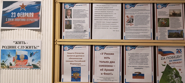 23 февраля – День Защитника Отечества23 февраля — дата, в которой сплелись героическое прошлое и ответственность за будущее. История этого праздника началась в суровом 1918 году с декрета о создании Красной Армии. И хотя за сто лет название менялось — от "Дня Красного подарка" до современного Дня защитника Отечества — суть осталась неизменной. Мы вспоминаем и первые бои под Псковом и Нарвой, и великий подвиг в годы Второй мировой, и ежедневный труд тех, кто сегодня бережет наш покой. Сегодня этот праздник объединяет всех, кто своим делом, верностью долгу и силой характера защищает свою страну и свою семью. С праздником мужества и чести!" В библиотеке академии к Дню Защитника Отечества оформлен красочный стенд "23 февраля".